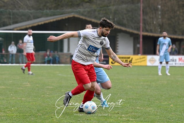 Fussball, Bezirksliga Ost, SG Berod-Wahlrod-Lautzert-Oberdreis (weiß-rot) vs. FC HWW Niederrossbach (hellblau), 23.03.2025 |