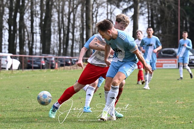 Fussball, Bezirksliga Ost, SG Berod-Wahlrod-Lautzert-Oberdreis (weiß-rot) vs. FC HWW Niederrossbach (hellblau), 23.03.2025 |