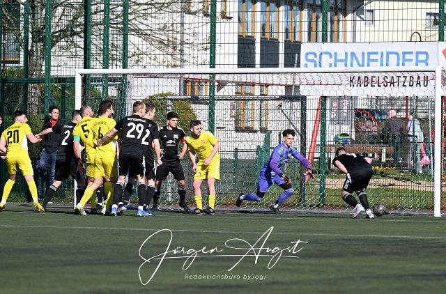 Fussball, Rheinlandliga, SG Malberg (schwarz) vs. TuS Kirchberg (gelb), 29.03.2025 |