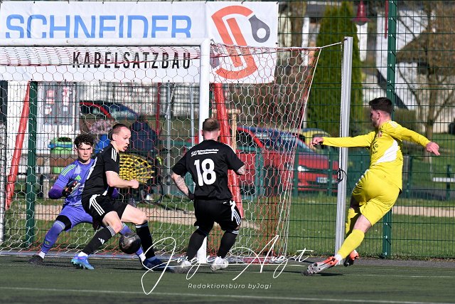 Fussball, Rheinlandliga, SG Malberg (schwarz) vs. TuS Kirchberg (gelb), 29.03.2025 |