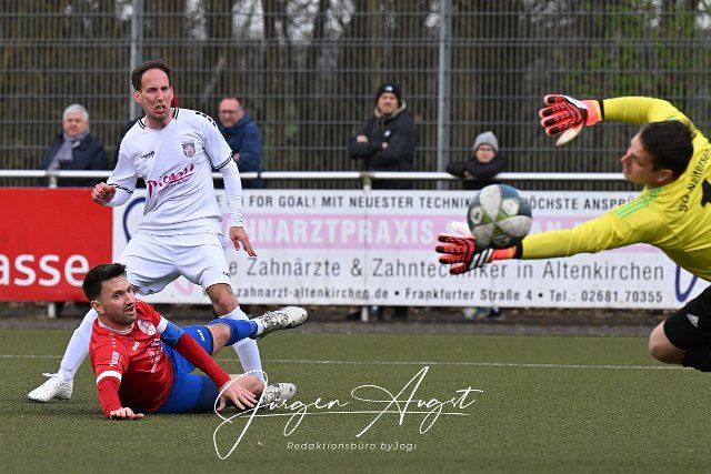 Fussball, Bezirksliga Ost, SG Neitersen-Altenkirchen (rot/blau) vs. TuS Montabaur (weiß), 30.03.2025 |
