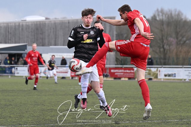 Fussball, Kreisliga B3, SSV Weyerbusch I (schwarz/weiß) vs. TuS Asbach II (rot) , 30.03.2025 |