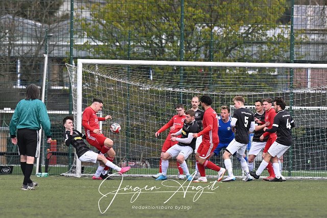 Fussball, Kreisliga B3, SSV Weyerbusch I (schwarz/weiß) vs. TuS Asbach II (rot) , 30.03.2025 |