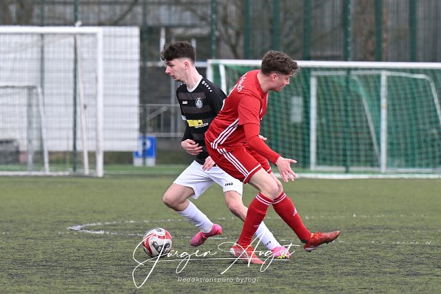 Fussball, Kreisliga B3, SSV Weyerbusch I (schwarz/weiß) vs. TuS Asbach II (rot) , 30.03.2025 |