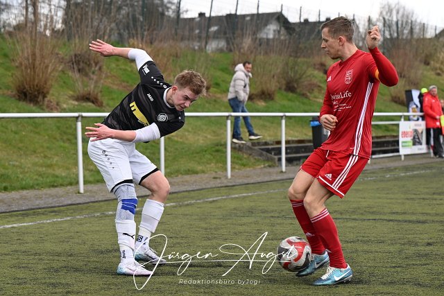 Fussball, Kreisliga B3, SSV Weyerbusch I (schwarz/weiß) vs. TuS Asbach II (rot) , 30.03.2025 |