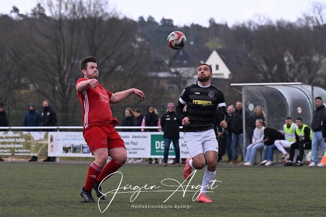Fussball, Kreisliga B3, SSV Weyerbusch I (schwarz/weiß) vs. TuS Asbach II (rot) , 30.03.2025 |