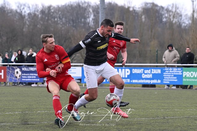 Fussball, Kreisliga B3, SSV Weyerbusch I (schwarz/weiß) vs. TuS Asbach II (rot) , 30.03.2025 |