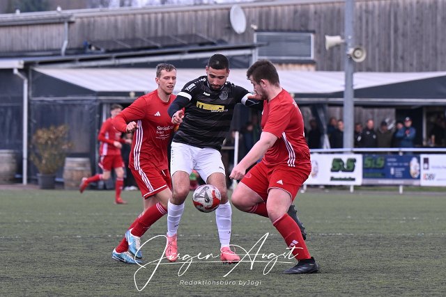 Fussball, Kreisliga B3, SSV Weyerbusch I (schwarz/weiß) vs. TuS Asbach II (rot) , 30.03.2025 |