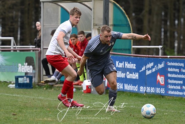 Fussball, Bezirksliga Ost, SG Berod-Wahlrod-Lautzert-Oberdreis (weiß/rot) vs. SG Hundsangen (grau), 13.04.2025 |
