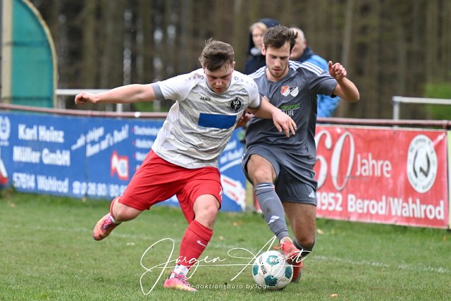 Fussball, Bezirksliga Ost, SG Berod-Wahlrod-Lautzert-Oberdreis (weiß/rot) vs. SG Hundsangen (grau), 13.04.2025 |