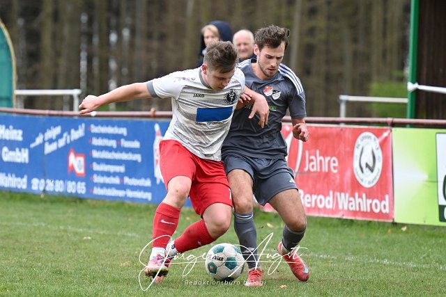 Fussball, Bezirksliga Ost, SG Berod-Wahlrod-Lautzert-Oberdreis (weiß/rot) vs. SG Hundsangen (grau), 13.04.2025 |