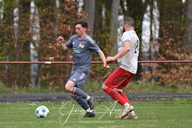 Fussball, Bezirksliga Ost, SG Berod-Wahlrod-Lautzert-Oberdreis (weiß/rot) vs. SG Hundsangen (grau), 13.04.2025 |