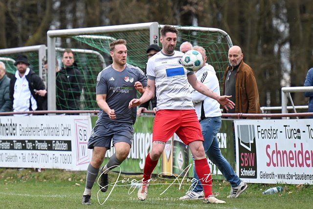 Fussball, Bezirksliga Ost, SG Berod-Wahlrod-Lautzert-Oberdreis (weiß/rot) vs. SG Hundsangen (grau), 13.04.2025 |