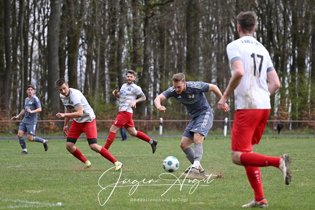 Fussball, Bezirksliga Ost, SG Berod-Wahlrod-Lautzert-Oberdreis (weiß/rot) vs. SG Hundsangen (grau), 13.04.2025 |