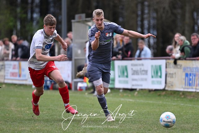 Fussball, Bezirksliga Ost, SG Berod-Wahlrod-Lautzert-Oberdreis (weiß/rot) vs. SG Hundsangen (grau), 13.04.2025 |
