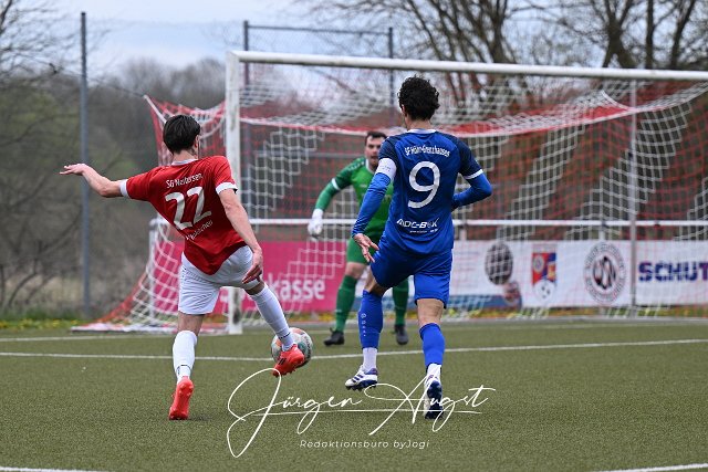Fussball, Bezirksliga Ost, SG Neitersen-Altenkirchen (rot-weiß) vs. SF Höhr-Grenzhausen (blau), 13.04.2025 |