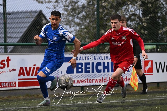 Fussball, Rheinlandliga, SG Malberg (rot) vs. FC Cosmos Koblenz (blau), 17.04.2025 |