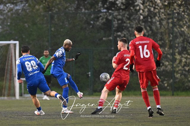 Fussball, Rheinlandliga, SG Malberg (rot) vs. FC Cosmos Koblenz (blau), 17.04.2025 |