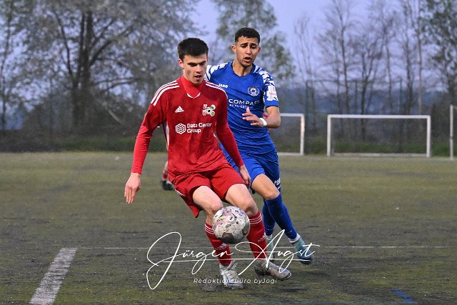 Fussball, Rheinlandliga, SG Malberg (rot) vs. FC Cosmos Koblenz (blau), 17.04.2025 |