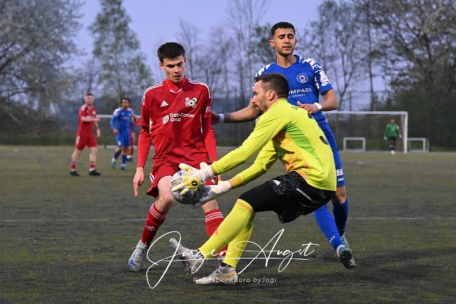 Fussball, Rheinlandliga, SG Malberg (rot) vs. FC Cosmos Koblenz (blau), 17.04.2025 |