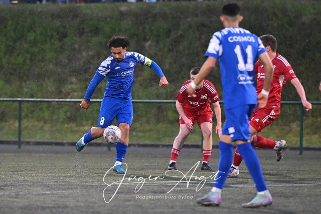 Fussball, Rheinlandliga, SG Malberg (rot) vs. FC Cosmos Koblenz (blau), 17.04.2025 |