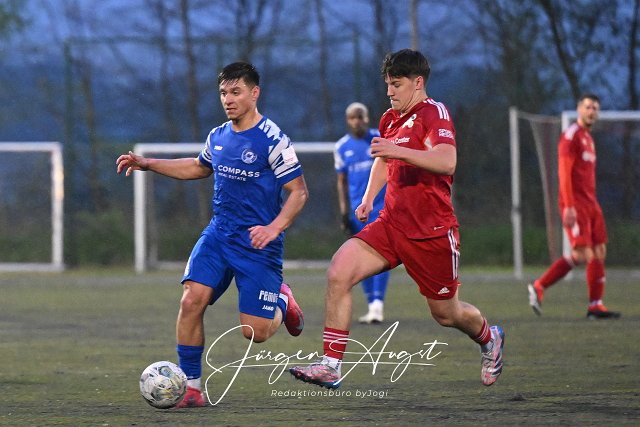Fussball, Rheinlandliga, SG Malberg (rot) vs. FC Cosmos Koblenz (blau), 17.04.2025 |