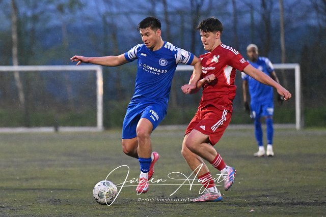 Fussball, Rheinlandliga, SG Malberg (rot) vs. FC Cosmos Koblenz (blau), 17.04.2025 |