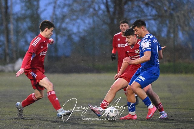 Fussball, Rheinlandliga, SG Malberg (rot) vs. FC Cosmos Koblenz (blau), 17.04.2025 |