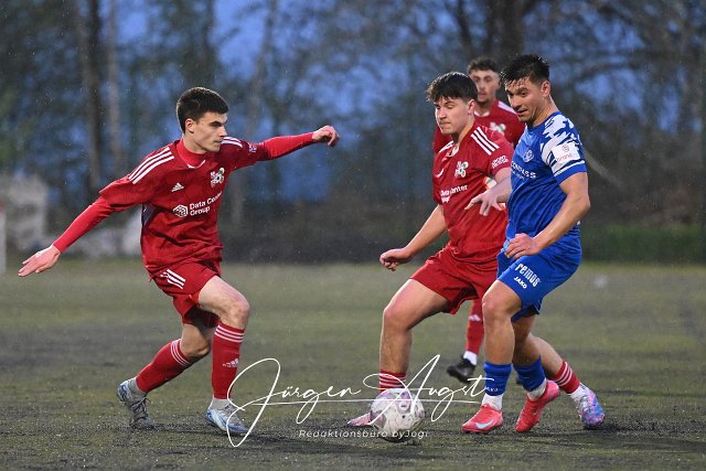 Fussball, Rheinlandliga, SG Malberg (rot) vs. FC Cosmos Koblenz (blau), 17.04.2025 |