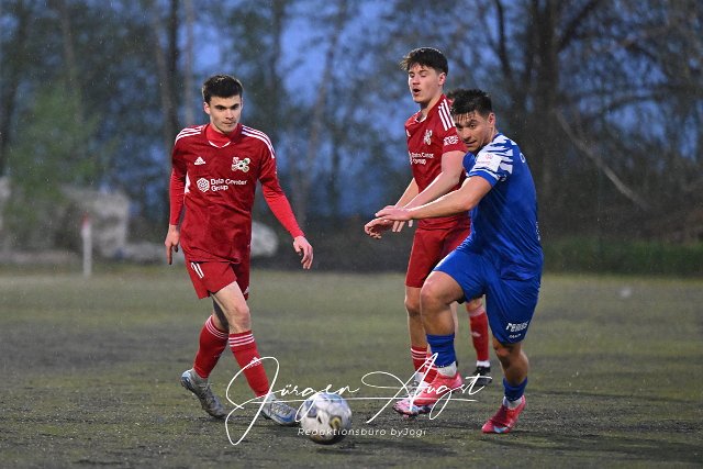 Fussball, Rheinlandliga, SG Malberg (rot) vs. FC Cosmos Koblenz (blau), 17.04.2025 |