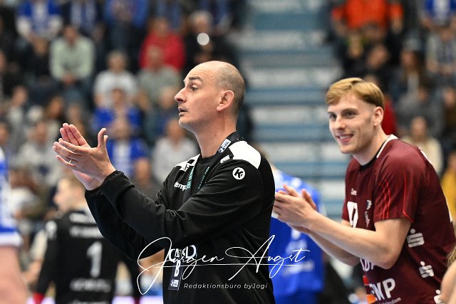 Emir Kurtagic (Trainer VfL Potsdam) applaudiert VfL Gummersbach vs. 1. VfL Potsdam, Handball, Daikin Handball Bundesliga, 27. Spieltag, Spielzeit 2024-2025, Schwalbe Arena, Gummersbach, 25.04.2025 Foto: Eibner-Pressefoto/Juergen Augst |