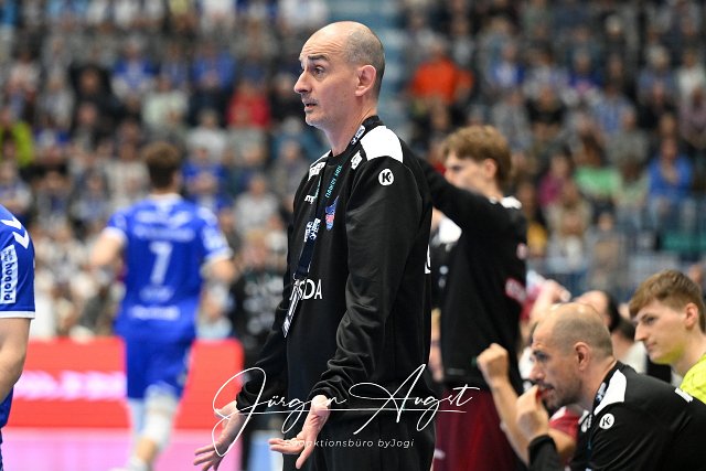 Emir Kurtagic (Trainer VfL Potsdam) ratlos VfL Gummersbach vs. 1. VfL Potsdam, Handball, Daikin Handball Bundesliga, 27. Spieltag, Spielzeit 2024-2025, Schwalbe Arena, Gummersbach, 25.04.2025 Foto: Eibner-Pressefoto/Juergen Augst |