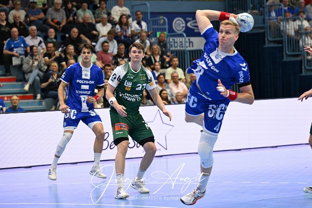 Ellidi Vidarsson (VfL Gummersbach 4) ist am Kreis frei GER, VfL Gummersbach vs. FRISCH AUF Goeppingen, Handball, Daikin 1. Bundesliga, 31. Spieltag, Spielzeit 2024-2025, Schwalbe Arena Gummersbach, 28.05.2025 Foto: Eibner-Pressefoto/Juergen Augst |