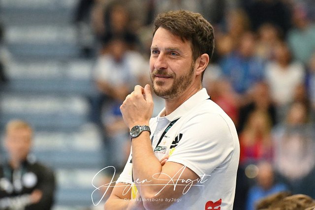 Benjamin Matschke (Trainer Frisch Auf Goeppingen) laechelt GER, VfL Gummersbach vs. FRISCH AUF Goeppingen, Handball, Daikin 1. Bundesliga, 31. Spieltag, Spielzeit 2024-2025, Schwalbe Arena Gummersbach, 28.05.2025 Foto: Eibner-Pressefoto/Juergen Augst |