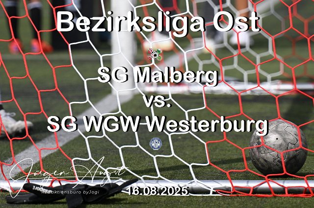 Fussball, Bezirksliga Ost, SG Malberg (rot) vs. SG Westerburg-Gemuenden-Willmenrod (schwarz-weiß) , 16.08.2025 |