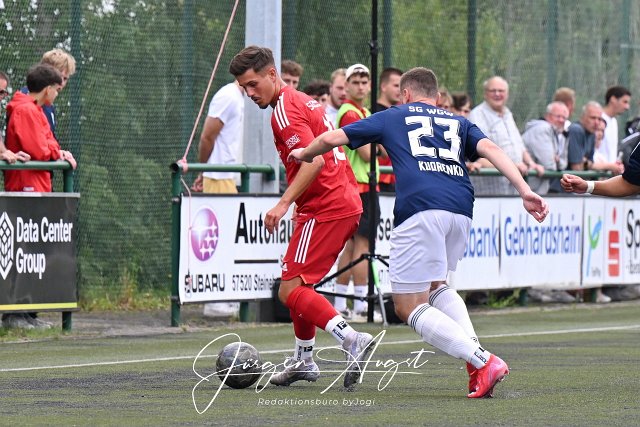 Fussball, Bezirksliga Ost, SG Malberg (rot) vs. SG Westerburg-Gemuenden-Willmenrod (schwarz-weiß) , 16.08.2025 |