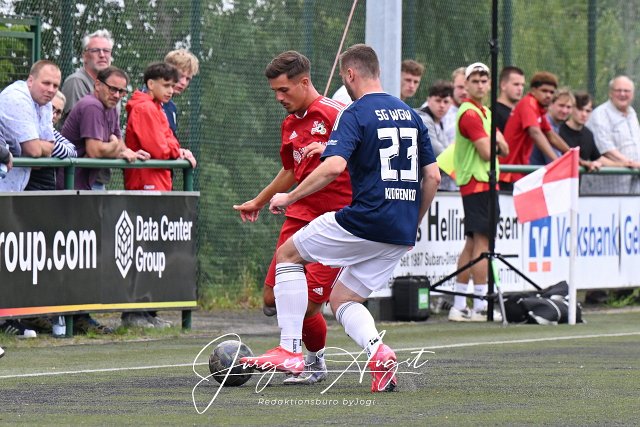 Fussball, Bezirksliga Ost, SG Malberg (rot) vs. SG Westerburg-Gemuenden-Willmenrod (schwarz-weiß) , 16.08.2025 |