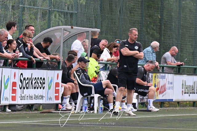 Fussball, Bezirksliga Ost, SG Malberg (rot) vs. SG Westerburg-Gemuenden-Willmenrod (schwarz-weiß) , 16.08.2025 |