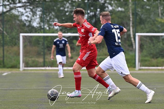 Fussball, Bezirksliga Ost, SG Malberg (rot) vs. SG Westerburg-Gemuenden-Willmenrod (schwarz-weiß) , 16.08.2025 |