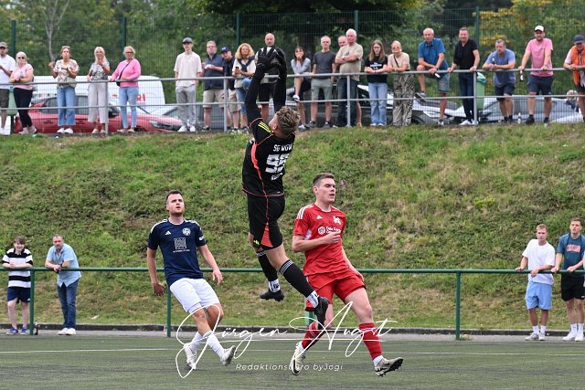 Fussball, Bezirksliga Ost, SG Malberg (rot) vs. SG Westerburg-Gemuenden-Willmenrod (schwarz-weiß) , 16.08.2025 |