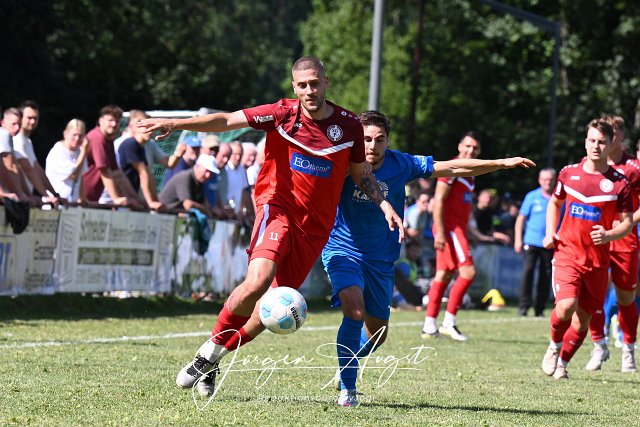Fussball, Bezirksliga Ost, SG Berod-Wahlrod-Lautzert-Oberdreis (rot) vs. SG Müschenbach (blau), 17.08.2025 |