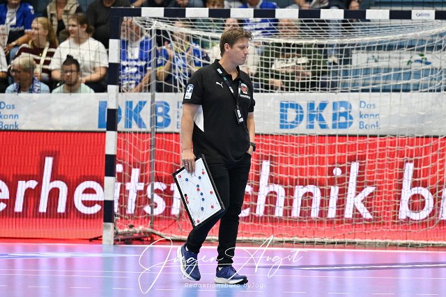 Nicolej Krickau (Fuechse Berlin Trainer) GER, VfL Gummersbach vs. Fuechse Berlin, Handball, Daikin 1. Bundesliga, 4. Spieltag, Spielzeit 2025-2026, Schwalbe Arena Gummersbach, 14.09.2025 Foto: Eibner-Pressefoto/Juergen Augst |