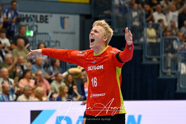 Bertram Obling (VfL Gummersbach 16) jubelt GER, VfL Gummersbach vs. Fuechse Berlin, Handball, Daikin 1. Bundesliga, 4. Spieltag, Spielzeit 2025-2026, Schwalbe Arena Gummersbach, 14.09.2025 Foto: Eibner-Pressefoto/Juergen Augst |