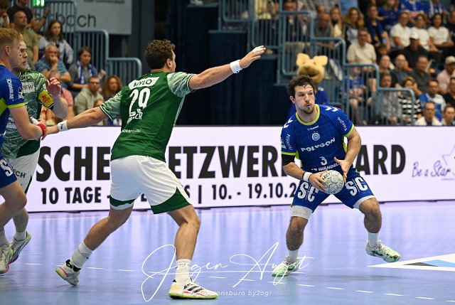 #3 Joao Gomes (VfL Gummersbach 3) ggegen Lukas Herburger (Fuechse Berlin 29) GER, VfL Gummersbach vs. Fuechse Berlin, Handball, Daikin 1. Bundesliga, 4. Spieltag, Spielzeit 2025-2026, Schwalbe Arena Gummersbach, 14.09.2025 Foto: Eibner-Pressefoto/Juergen Augst |