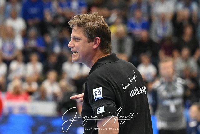 Nicolej Krickau (Fuechse Berlin Trainer) mit verbissenem Gesichtsausdruck GER, VfL Gummersbach vs. Fuechse Berlin, Handball, Daikin 1. Bundesliga, 4. Spieltag, Spielzeit 2025-2026, Schwalbe Arena Gummersbach, 14.09.2025 Foto: Eibner-Pressefoto/Juergen Augst |