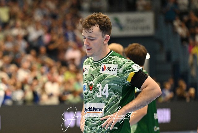 Hakun West av Teigum (Fuechse Berlin 34) enttaeuscht GER, VfL Gummersbach vs. Fuechse Berlin, Handball, Daikin 1. Bundesliga, 4. Spieltag, Spielzeit 2025-2026, Schwalbe Arena Gummersbach, 14.09.2025 Foto: Eibner-Pressefoto/Juergen Augst |