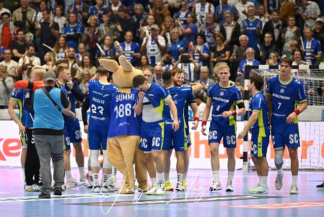 Mit einem Heimsiegegen die Fuechse Berlin behaelt der VfL Gummersbach beide Punkte zuhause in der Schwalbe Arena GER, VfL Gummersbach vs. Fuechse Berlin, Handball, Daikin 1. Bundesliga, 4. Spieltag, Spielzeit 2025-2026, Schwalbe Arena Gummersbach, 14.09.2025 Foto: Eibner-Pressefoto/Juergen Augst |