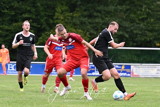 Fussball, Bezirksliga Ost, SG Lauterzert-Oberdreis-Berod-Wahlrod (rot) vs. SG Herschbach (schwarz), 28.09.2025 |