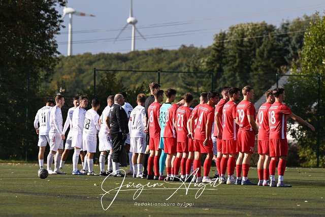Fussball, Bezirksliga Ost, SG Malberg (rot) vs. FC Kosova Montabaur (weiss), 04.10.2025 |