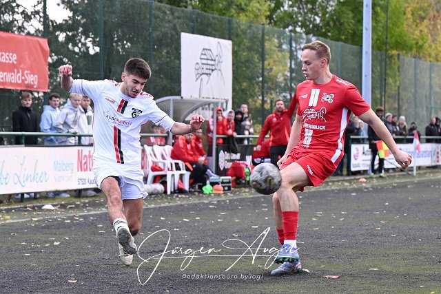 Fussball, Bezirksliga Ost, SG Malberg (rot) vs. FC Kosova Montabaur (weiss), 04.10.2025 |
